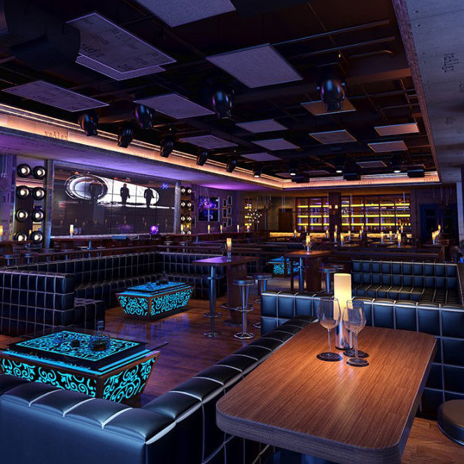 Nightclub KTV Furniture Sofa Lounge Booth Seating Led Cube Table