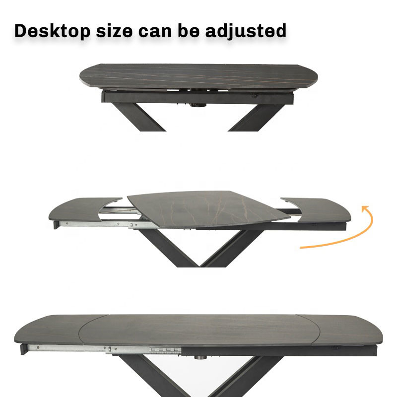 Black Extension Extendable Adjusted Dining Table Nordic Modern Style