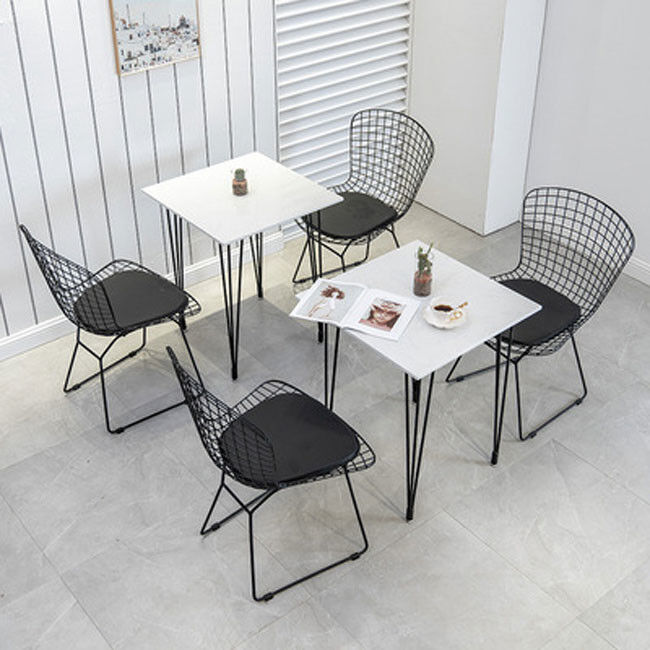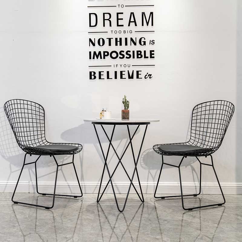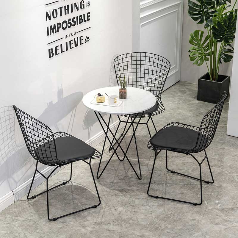 Modern Black Metal Wire Dining Chair And Table With Leather Cushion