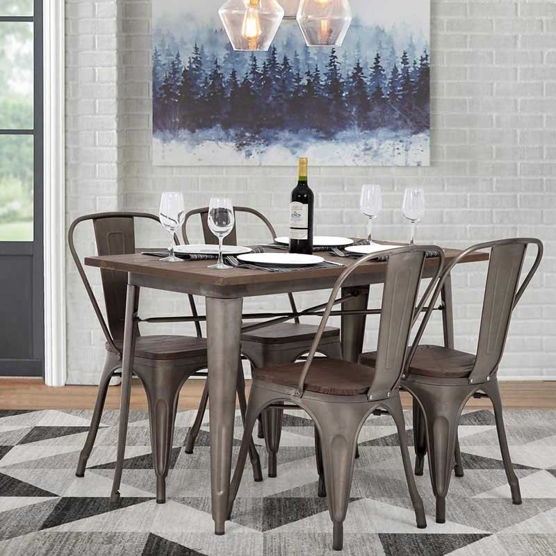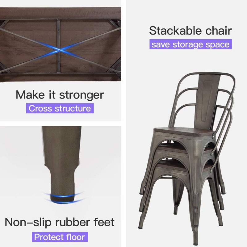 Metal Industrial Steel Restaurant Dining Table Set With 4 Chairs