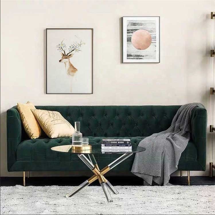 Luxury Green Velvet Fabric Cushion Hotel Lobby Sofa Pull Clasp Sofa