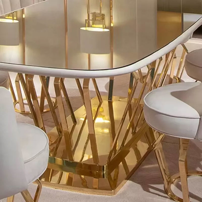 Dining Room Furniture Luxury Golden Stainless Steel Glass Dining Table Set